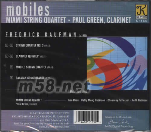 MOBILES 單簧管弦樂四重奏專輯背面圖片