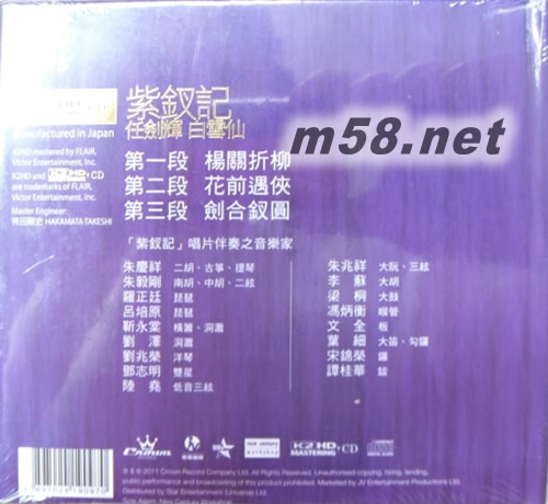 價格為估,以實到貨為準! 紫釵記 主題曲(娛樂唱片K2HD系列)限量版(m58.net) 娛樂經典 K2HD CD Made In Japan By Memory Tech [全球限量真存版發行1000張] 蓋印編號 0001-1000