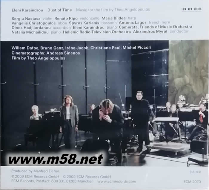 時間的灰燼 Eleni Karaindrou - Dust of Time(m58.net) 相遇、重逢與分離,復雜的情緒與回憶編織出迴盪人心的經典鉅作。這是希臘大導安哲羅普洛斯(Theo Angelopoulos)一貫堅持的拍片態度,而長期與之相輔相成的配樂家伊蓮妮.卡蘭卓(Eleni Karaindrou)在新片《時光灰燼》(Dust of Time)中依舊維持極高水準的編曲與錄音品質。在這與 安哲羅普洛斯合作的第八部電影配樂中,她深入捕捉事物本質、表面和激烈震盪的聲響,強調出色彩的混合與永恆的懷念之感,構成了如同調色板上顏料融合之微妙平衡。 《時光灰燼》清晰地描繪出河岸旁的優雅景色;而有著回聲結構的共鳴腔體,一種獨特的聲響厚度,由手風琴流暢優閒的彈奏出來。整體呈現出飄逸動人,自然愉悅的幽情氣息。其中數曲靈活地勾畫了主角過往在寒冷的西伯利亞之回憶,Eleni的出色即為她的超然詮釋功力。巧妙運用每種樂器的個性與定位,成功的襯托出 安哲羅普洛斯所需要的哀傷氛圍。 Eleni不只是在編曲創作上有著卓越的表現,在曲目15「Dance Theme」這首杰出的鋼琴奏鳴曲中展演了她在琴藝上的過人造詣,與之合作的雅典交響樂團優雅穩健,樂團指揮 Alexandros Myrat敏銳細膩的指揮手法更是功不可沒。 《時光灰燼》(Dust of Time)的音樂完美詮釋了極為特殊的內心感受。樂曲訴說著主角離開自己的國家,離別的苦澀之感貫穿於旋律之間。在某些時刻上巧妙運用手風琴那充滿異國風情的曲調,則與雙簧管出奇地相襯?!稌r光灰燼》在某些層面上的簡約寧靜,更能反映出其音樂魅力與情緒。 Eleni的音樂長期以來與其它的電影配樂師不同之處在於,她的作品超越了所謂「配樂」的層級,是擁有著絕對獨立聆聽性的音樂作品;但是與 安哲羅普洛斯的電影合而為一時,又能巧妙無比地捕捉住人物之間細膩的情感交流,刻劃出人心內部的深層意識景象。