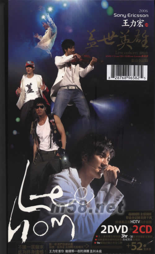 超越國際全球頂級 影音全記錄 現場高品質HDTV同步錄制2DVD+2CD 史上最完整全程收錄3HR/32首演唱會影音實錄 絕無僅有收錄特別來賓WESTLIFE合唱曲 1HR 幕后紀錄片完全公開+52頁寫真集 不讓一票難求 成為終身遺憾!那一夜我們意猶未盡還想一看再看直到明天的明天 王力宏要你 繼續那一夜的沸騰 直到永遠 2006唯一值得紀念的夜晚不容錯過后 收藏王力宏蓋世英雄LIVE CONCERT
