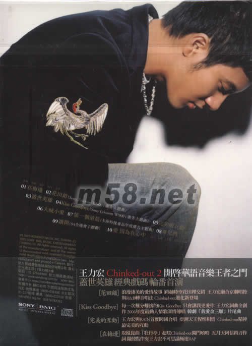 *CHINKED-OUT 音樂詞大集與王力宏同步 2004首他[CHINKED-OUT]樂風,2005眾所期待的華語音樂影音同步. 京色武功 傳奇蓋世 chinked-out 千古絕唱 蓋世英雄退將到來 王力宏2005壓抽專輯2006第一第王者再現 王力宏Chinked-out 2 開啟華語音樂王者之門 蓋世英雄經典戲碼輪番首演 (花田錯)浪漫凄美的愛情故事 跨越時空花田里交錯 王力宏融合京劇唱腔與R&B轉音唱法Chinked-our進化新全登場 (KISS GOODBYE)每一次難分難舍的KISS GOODBYE 只會讓我更愛你 王力宏詞曲全創作2006年度最動人情歌深情傳唱 韓劇[我愛金三順]片尾 (完美的互動)王力宏與RAIN首度跨國合唱 亞洲天王惺惺相惜 CHINKED-OUT精神最完美的互動 (在梅邊)取樣昆曲[牡丹亭)超炫CHINKED-OUT獨門嘻哈 五月天阿信跨刀作詞鑼鼓點伴奏王力宏不可思義極速RAP