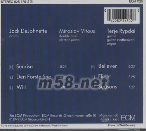 RYPDAL,VITOUS,DEJOHNETTE專輯背面圖片