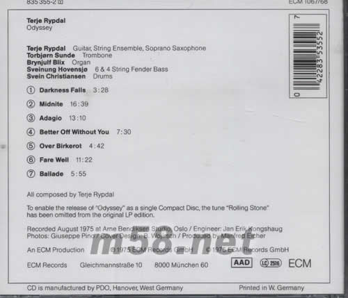 ODYSSEY(m58.net) 挪威爵士吉他手,爵士音樂家Terje Rypdal是當代歐洲爵士的重要代表人物,是北歐爵士的明星之一;更被譽為吉他之神。他的演奏,把New Age音樂、搖滾和爵士樂的各種元素糅合在一起,創造出自己獨特的風格。