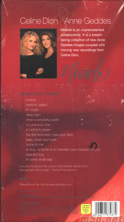 愛的奇跡 ANNE GEDDES A CELEBRATION OF NEW LIFE(再版)(m58.net) 2004年發行的專輯,這次是Sony唱片公司再版發行。 席琳?迪翁可謂是有史以來最偉大的歌手之一,曾獲得過格萊美獎、朱諾獎、奧斯卡等大獎,并偶爾參與作品的創作。席琳?迪翁的音樂受到了多種音樂風格的影響,包括流行、搖滾、福音、古典等等。同樣,席琳?迪翁也因為卓越的聲音技巧處理而為人注目。席琳?迪翁推出了許多英語和法語等排行榜上的冠軍歌曲,2004年她被授予世界音樂獎的鉆石獎,以此表彰她成為“全球最暢銷的女藝人”。2007年底,席琳?迪翁結束在美國賭城拉斯韋加斯的愷撒宮演唱秀“A New Day…Live In Las Vegas”,并發行英文專輯《Tacking Chances》,隨即在全球熱銷。 上億張專輯銷量的紀錄在當今流行歌壇有幾個人能達到?雖然說銷量不能代表一切,但席琳?迪翁也并非某些苛刻的評論家所說的那種“花瓶”。“花瓶”這個稱謂放在年輕一輩的眾多電視偶像上倒是恰如其分,但席琳?迪翁在流行歌曲上的演繹水準卻是在當今歌壇排得上號的。否則你怎么解釋這位出身加拿大魁北克小鎮工人階級家庭的女孩最后能夠成為能跟流行天王邁克爾?杰克遜平起平坐的流行天后?而她18歲那年看見已是巨星的邁克爾?杰克遜在電視上表演時還說:“我一定要和他一樣有名。”再有,你又怎么解釋當她的經紀人安格利(也是她后來的丈夫)第一次聽到這位5歲開始唱歌12歲開始寫歌的女孩現場演唱后便立馬把自己房子抵押了來給席琳?迪翁出唱片,而她15歲那年的專輯已經在法國賣到了金唱片銷量。 爾后的整個90年代流行歌壇差不多是席琳?迪翁的天下,除了幾張熱賣專輯和格萊美大獎以外,真正讓中國歌迷熟悉她的自然是愛情史詩《泰坦尼克》的主題曲《My Heart Will Go On》。這時候的席琳?迪翁已經和她當年的偶像邁克爾?杰克遜的成就不相上下,但她更出色的地方在于她在歌迷和業界中的人緣更好,工作也更勤奮:收錄《My Heart Will Go On》的專輯找來了芭芭拉?史翠珊、帕瓦羅蒂、比基斯樂隊等超級明星助陣,而她結婚的那天,全世界數以百萬計的歌迷一起為他們慶祝,盛況空前。