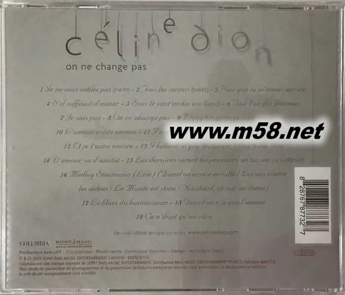 ON NE CHANGE PAS (加拿大版)專輯背面圖片