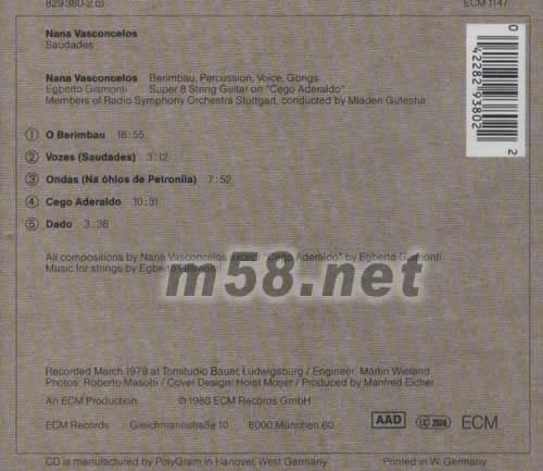 NANA VASCONCELOS SAUDADES專輯背面圖片