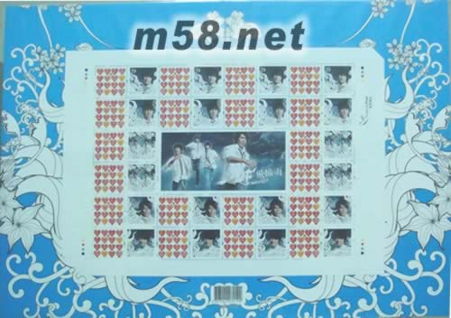 飛輪海限量紀(jì)念版郵票B款(深藍(lán))(m58.net) 飛輪海圖案的21枚 心形圖案的20枚 共計(jì)41枚 每張郵票尺寸約:3*3CM 平面載體尺寸:42*27CM