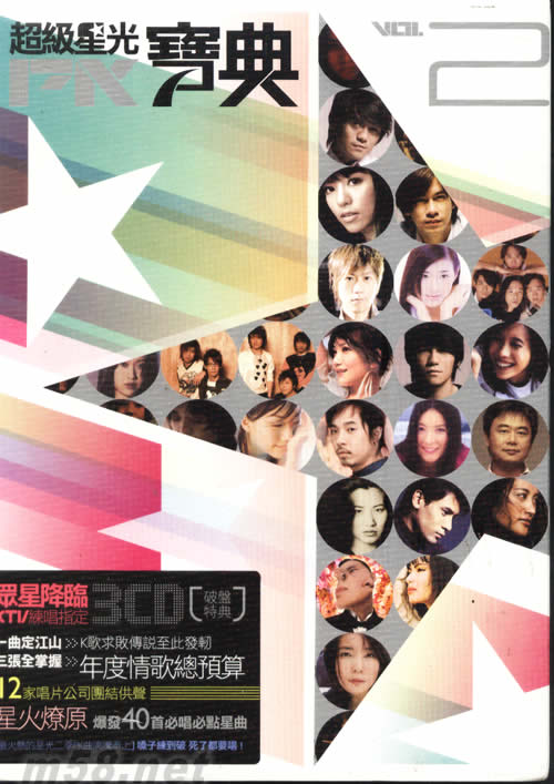 超級星光寶典2(m58.net) 超級星光PK寶典2 眾星降臨 KTV練唱指定 一曲定江山,K歌求敗傳說至此發(fā)軔 一張專輯掌握07-08年度情歌總預算 12家唱片公司團結(jié)供聲 星火燎原 爆發(fā)40首K歌必唱 KTV必點金曲 最火熱的星光二季PK曲沸騰奉上 嗓子練到破,死了都要唱!!
