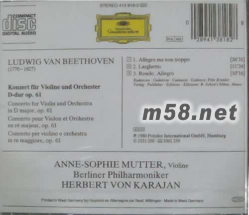 貝多芬小提琴協奏曲 穆特與卡拉揚專輯背面圖片