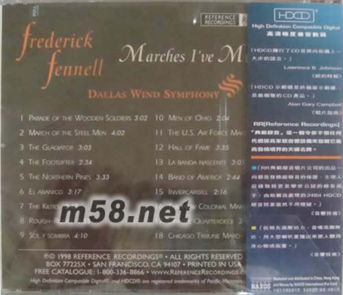 大將軍 Marches I've Missed HDCD(m58.net) 弗雷德里克?芬納爾(Frederick Fennel)被譽為“管樂隊的教父”和伊斯曼管樂團的始祖,在過去40年里已經先后錄制250多首進行曲。 這張《進行曲集》是弗雷德里克?芬納爾在RR旗下第三度與達拉斯管樂團合作。從唱片標題就可以清楚知道,這些曲目是選自弗雷德里克?芬納爾懷念的進行曲,而其中不乏來自上世紀的著名作品。 有RR的最新錄音技術,您可以輕松欣賞一個世紀以來的經典進行曲,還可以從中探索一代管樂大師數十年來的心路歷程。