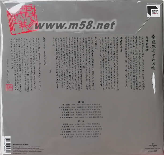 極致黑膠版本2018再續經典 「披頭四」用國際級頂級錄音室ABBEY ROAD STUDIOS呈獻 頂尖混音師Sean Magee傾力炮製.模擬原母帶取樣 180Grams.33 1/3 Stereo.Made In Japan 內附11.5x11.5吋28頁彩色印刷歌詞/作品導賞(附「意譯」/「解說」)寫真畫冊 ARS LP鄧麗君–淡淡幽情(Re-mastered by ARS)
