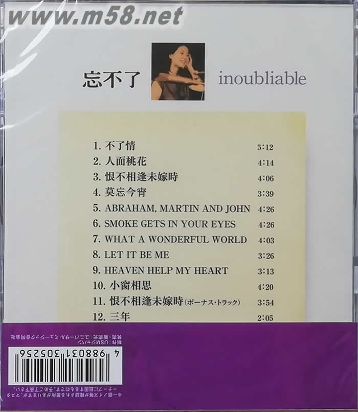 1. 不了情 鄧麗君 play 2. 人面桃花 鄧麗君 play 3. 恨不相逢未嫁時(shí) 鄧麗君 play 4. 莫忘今宵 鄧麗君 play 5. Abraham, Martin and John 鄧麗君 play 6. Smoke Gets In Your Eyes 鄧麗君 play 7. What A Wonderful World 鄧麗君 play 8. Let It Be Me 鄧麗君 play 9. Heaven Help My Heart 鄧麗君 play 10. 小窗相思 鄧麗君 play 11. 恨不相逢未嫁時(shí) (親切版) 鄧麗君 play 12. 三年