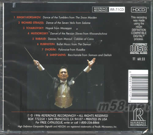1. RIMSKY-KORSAKOV: Dance of the Tumblers from The Snow Maiden 2. RICHARD STRAUSS: Dance of the Seven Veils from Salome 3. TCHAIKOVSKY Hopak from Mazeppa 4. MUSSORGSKY: Dance of the Persian Slaves from Khovanshchina 5. RABAUD: Dances from Marouf, Cobbler of Cairo 6. RUBINSTEIN: Ballet Music from The Demon 7. DVORAK: Polonaise from Rusalka 8. SAINT-SAËNS: Bacchanale from Samson and Delilah
