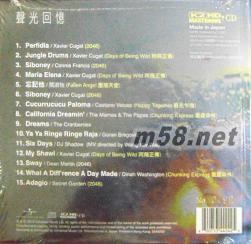 聲光回憶 K2HD 首批限量版專輯背面圖片
