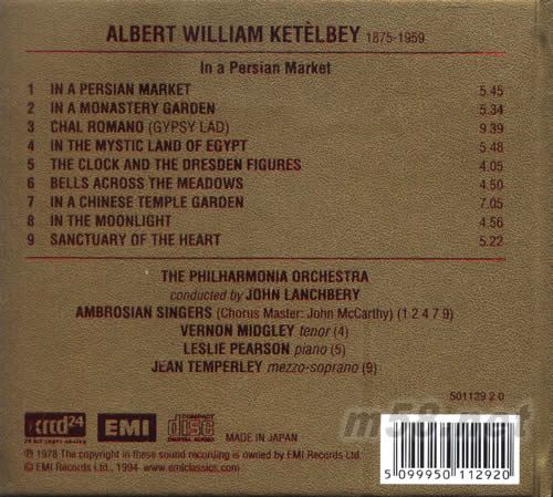 1. In A Persian Market 2. In A Monastary Garden 3. Chal Romano (Gyspy Lad) 4. In The Mystic Land Of Egypt 5. The Clock And The Dresden Figures 6. Bells Across The Meadows 7. In A Chinese Temple Garden 8. In The Moonlight 9. Sanctuary Of The Heart
