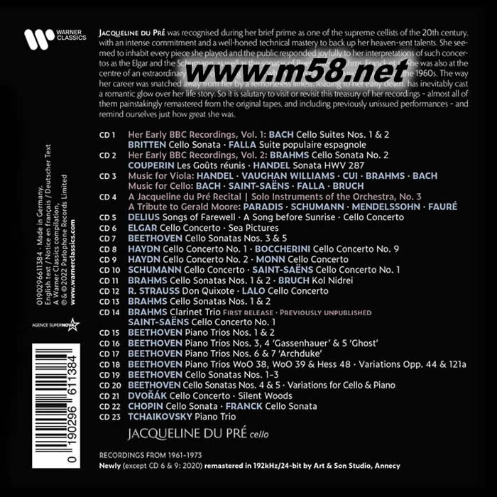 杜甫蕾 大提琴杜普蕾華納錄音大全集 The Complete Warner Recordings (23CD 套裝)專輯背面圖片