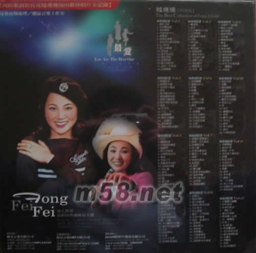 鳳飛飛精選 Vol.1 01. 祝你幸福 02. 往事難追憶 03. 愛的禮物 04. 可愛的陌生人 05. 燕雙飛 06. 真情比酒濃 07. 花兒為什么有煩惱 08. 五月的花 09. 愛人頂呱呱 10. 落花淚 11. 愛不是占有 12. 愛的季節(jié) 13. 愛情的鎖 14. 喚不回的你 15. 送你一片相思 16. 含情脈脈 鳳飛飛精選 Vol.2 01. 碧城故事 02. 說聲對(duì)不起 03. 未曾留下地址 04. 寒星 05. 我不能沒信心 06. 愛要讓他知道 07. 相聚少離別多 08. 找不到原來的我 09. 愛我 10. 笑笑笑 11. 十七、十八 12. 兩個(gè)圈圈 13. 桃花又盛開 14. 一見鐘情 15. 祝你順風(fēng) 16. 我的回憶有個(gè)你 鳳飛飛精選 Vol.3 01. 巧合 02. 純純的愛 03. 可愛的玫瑰花 04. 敲敲門 05. 明日君再來 06. 有真情有活力 07. 喝采 08. 雪花片片 09. 我只要看見你 10. 淡淡的回憶 11. 同心橋 12. 愛苗 13. 世界真細(xì)小 14. 追 15. 愛之歌 16. 夢(mèng)里的微笑 鳳飛飛精選 Vol.4 01. 又是秋天 02. 夏日假期玫瑰花 03. 落花情 04. 溫暖的秋天 05. 說不完訴不盡 06. 夜空 07. 約會(huì)時(shí)間 08. 當(dāng)寂寞的時(shí)候 09. 唱一首歌 10. 半山飄雨半山晴 11. 愛的夢(mèng)兒最美麗 12. 青春 13. 情思?jí)艋?14. 失落 15. 人生不是夢(mèng) 16. 你曾經(jīng)愛過我 鳳飛飛精選 Vol.5 01. 楓葉情 02. 流云 03. 片片楓葉片片情 04. 小河灣灣 05. 風(fēng)飛飛云飛飛 06. 長(zhǎng)堤 07. 夢(mèng)幻曲 08. 山鷹 09. 野玫瑰 10. 你最愛我 11. 我是多情人 12. 小貝殼之戀 13. 池畔女郎 14. 愛的腳步 15. 默默無言 16. 多看一眼 鳳飛飛精選 Vol.6 01. 落葉飄飄 02. 溫暖在秋天 03. 呼喚 04. 秋纏 05. 貝殼花 06. 窗 07. 明天二十歲 08. 友情的安慰 09. 微笑 10. 一千個(gè)微笑 11. 玫瑰戀 12. 有人喜歡你 13. 幸福已來到 14. 生命的花環(huán) 15. 小詩 16. 再見夏天 鳳飛飛精選 Vol.7 01. 花謝花飛飛滿天 02. 我把一切告訴你 03. 我乘風(fēng)兒來 04. 不了緣 05. 不容易遇見你 06. 晚安!十九歲 07. 雨痕 08. 你說走就走 09. 長(zhǎng)相憶 10. 溫柔 11. 難分離 12. 如果未曾認(rèn)識(shí)你 13. 愛的夢(mèng)鄉(xiāng) 14. 夢(mèng)中愛著你 15. 記得我 16. 當(dāng)我認(rèn)識(shí)你 鳳飛飛精選 Vol.8 01. 意難忘 02. 相思河畔 03. 情人的眼淚 04. 我的心里沒有他 05. 大江東去 06. 出人頭地 07. 總有一天等到你 08. 江水向東流 09. 我是一只畫眉鳥 10. 藍(lán)與黑 11. 秋的懷念 12. 重相逢 13. 深情難忘 14. 幸福那里來 15. 今宵多珍重 16. 愛情如水向東流 鳳飛飛精選 Vol.9 01. 春風(fēng)吻上我的臉 02. 綠島小夜曲 03. 愛的鈴聲 04. 遙遠(yuǎn)寄相思 05. 雪山盟 06. 愿嫁漢家郎 07. 懷念 08. 白蘭香 09. 秦淮河畔 10. 南屏晚鐘 11. 我要為你歌唱 12. 愛神的箭 13. 萬里晴空 14. 你若不在我身邊 15. 一舞難忘 16. 水仙花 鳳飛飛精選 Vol.10 01. 夏的季節(jié) 02. 夏艷 03. 別再憧憬 04. 潮汐 05. 我的婚禮 06. 天空依然蔚藍(lán) 07. 雖然不是初戀 08. 思念之心 09. 尋 10. 星月 11. 瀟灑的走 12. 牽情 13. 雜草之路 14. 雪中行 15. 前景 16. 筆下留情 17. 漂泊 18. 午夜的街頭 鳳飛飛精選 Vol.11 01. 掌聲響起 02. 流水年華 03. 我是一片云 04. 沒有泥土那有花 05. 晨霧 06. 你家大門 07. 喜氣洋洋 08. 我是中國(guó)人 09. 我愿 10. 請(qǐng)求 11. 多可愛 12. 霧來了 13. 一片深情 14. 水上人家 15. 可愛的人兒在那里 16. 奔向彩虹 鳳飛飛精選 Vol.12 01. 月朦朧鳥朦朧 02. 好好愛我 03. 松林的低語 04. 一顆紅豆 05. 雁兒在林梢 06. 相思爬上心底 07. 另一種鄉(xiāng)愁 08. 你來了 09. 又見秋蓮 10. 秋葉飄落時(shí) 11. 花有情花有愛 12. 就是溜溜的她 13. 金盞花 14. 夢(mèng)難留 15. 星語 16. 往日的戀情