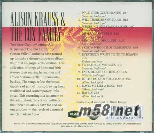 I Know Who Holds Tomorrow我知道誰擁有明天(m58.net) 多次被評(píng)為世界最美的女聲 坐擁11座格萊美獎(jiǎng)。 最著名的歌曲When you say nothing at all(永遠(yuǎn)有多遠(yuǎn)) 被無數(shù)人當(dāng)作心中永恒的經(jīng)典。 冷山中那首動(dòng)人的The Scarlet Tide的演唱者.獲得2004年奧斯卡最佳電影歌曲提名。 在和聯(lián)合車站樂隊(duì)的合作后,Union Station的Bluegrass威力又像是幫她往前推了一把,讓已經(jīng)擁有翅膀的Alison又添加一道光環(huán)。 當(dāng)一位鄉(xiāng)村電臺(tái)DJ某天在節(jié)目中播放Alison精選專輯主打歌「When You Say Nothing At All」后,每天如浪潮般的點(diǎn)歌頻率,開啟了鄉(xiāng)村音樂的一個(gè)新傳奇。Alison在1995年與Union Station合作的精選大碟,曾是鄉(xiāng)村音樂排行榜第2名、流行音樂專輯第15名,全美銷量達(dá)二百萬張,這對(duì)于一個(gè)鄉(xiāng)村歌手而言,是相當(dāng)大的數(shù)目。不過與其說專輯得到如此多的成功是個(gè)意外,不如承認(rèn)Alison無可否認(rèn)十分甜美的歌喉,及用心演唱的態(tài)度,才是讓她長(zhǎng)久以來受歌迷肯定的主要原因。 16歲時(shí),Alison Krauss(艾莉森.克羅絲)與美國鄉(xiāng)村音樂最重要的獨(dú)立唱片公司Rounder簽約,發(fā)行的第一張個(gè)人專輯,立刻成為樂評(píng)家的最愛。18歲首度獲得葛萊美獎(jiǎng),之后又繼續(xù)獲得無數(shù)鄉(xiāng)村音樂獎(jiǎng)項(xiàng),其中包括11項(xiàng)葛萊美獎(jiǎng),總總的榮耀應(yīng)該都是因?yàn)樗龔男】鄬W(xué)古典小提琴、民謠小提琴及歌唱技巧。 作為電影「新娘百分百」主題曲「When You Say Nothing At All」原唱者,與羅南詮釋方式不同,Alison溫柔舒服的唱腔,搭配著吉他和鋼琴伴奏,簡(jiǎn)單又令人感動(dòng)不已;樂評(píng)家均認(rèn)為AKUS(Alison Krauss and Union Station)從80年代末至90年代中,將草根藍(lán)調(diào)音樂從地方性音樂帶領(lǐng)成為全世界均能接受的樂風(fēng),在樂壇占有舉足輕重的地位。 1999年,Alison Krauss的專輯《Forget About It》成為金唱片。一年后,她因在《O Brother ,Where Art You》電影原聲專輯中的出色表現(xiàn)而再度引起人們關(guān)注,她也因此而成為自Bill Monroe之后,又一位從肯塔基西部群山中突現(xiàn)的藍(lán)草歌手。不論在藍(lán)草音樂領(lǐng)域還是鄉(xiāng)村主流音樂領(lǐng)域,Alison Krauss和她的樂隊(duì)Union Station在過去一年中的出色表現(xiàn)都是不容忽視的。除了在原聲專輯中的合作,他們還同Kenny Rogers等老鄉(xiāng)村歌手和傳統(tǒng)藍(lán)草音樂歌手錄制作品。 Alison Krauss 是當(dāng)今美國藍(lán)草音樂的領(lǐng)軍者,“藍(lán)草音樂”(Blue Grass)是美國民間音樂的一種,從上世紀(jì)二十年代出現(xiàn)并開始發(fā)展,在新世紀(jì)里未顯絲毫頹敗之勢(shì),因Alison 這樣優(yōu)秀蘭草歌手的不斷革新,使蘭草音樂煥發(fā)出更為迷人的氣質(zhì),作品逐漸擠占主流唱片市場(chǎng)份額,且在全球都擁有越來越多的歌迷。 Alison的歌曲之所以吸引人是因其個(gè)人演唱魅力和她所創(chuàng)作的精致、純正的蘭草音樂。Alison的歌曲中使用的樂器依然是小提琴、曼陀鈴、木吉他和斑鳩琴這樣蘭草的標(biāo)準(zhǔn)樂器,編曲配器也絕少矯飾,沒有任何世俗渲染的音樂配上Alison Krauss清泉般透徹的歌聲,使得蘭草音樂愈加發(fā)揚(yáng)光大。 聽Alison Krauss唱歌,恍如清晨站在草原上,輕風(fēng)拂在臉上,和煦的陽光照在身上,抬起頭,看藍(lán)天上白云悠然而過…… 《Let Me Touch You For A while》、等曲子反復(fù)聽?zhēng)资?,還是覺得時(shí)間過得太快。孤獨(dú),而且最好有點(diǎn)寂寞的時(shí)候適合欣賞Alison Krauss,無論內(nèi)心還是環(huán)境,都異常安靜Alison Krauss 單薄而清亮的歌聲,時(shí)而歡喜昂揚(yáng),時(shí)而抑郁低吟,很簡(jiǎn)單的音樂,很平實(shí)地唱著生活中的點(diǎn)點(diǎn)滴滴。這是一種不慍不火,溫暖卻憂郁,柔美又堅(jiān)強(qiáng)的感動(dòng),一種舒服得令人想掉淚的感動(dòng)。