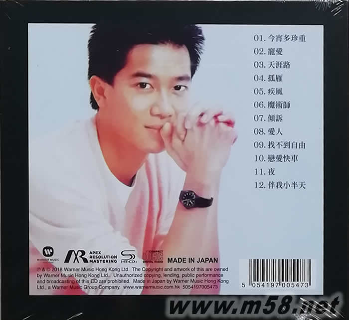1、今宵多珍重 2、寵愛 3、天涯路 4、孤雁 5、疾風 6、魔術師 7、傾訴 8、愛人 9、找不到自由 10、戀愛快車 11、夜 12、伴我小半天
