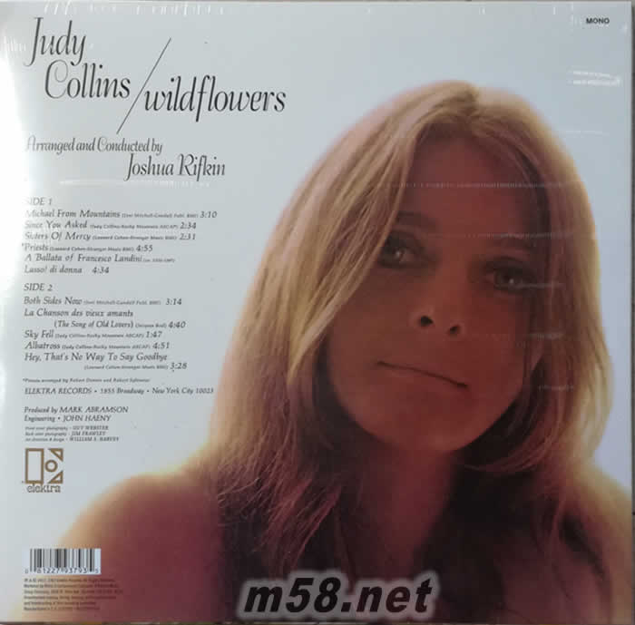 Wildflowers (Vinyl)黑膠(m58.net) 朱蒂·考林斯(Judy Collins)是美國60年代民謠舞臺偉大的女歌手之一,她出生于西雅圖,早年專修古典鋼琴,在十幾歲時就接觸了大量的傳統音樂,這對她后來的演唱風格有著很大影響。朱蒂·考林斯有著優美細膩、水晶般清亮的嗓音,具有無伴奏演唱的得天獨厚的條件。她演唱的歌曲從配器到旋律都比較簡單,但卻給人一種純潔美好、返樸歸真的感覺。聽她的演唱,使你仿佛能嗅到草地的芳香,仿佛沐浴在鄉村的陽光下,這恰恰應驗了一句老話:最簡單的東西卻往往最能打動人!
