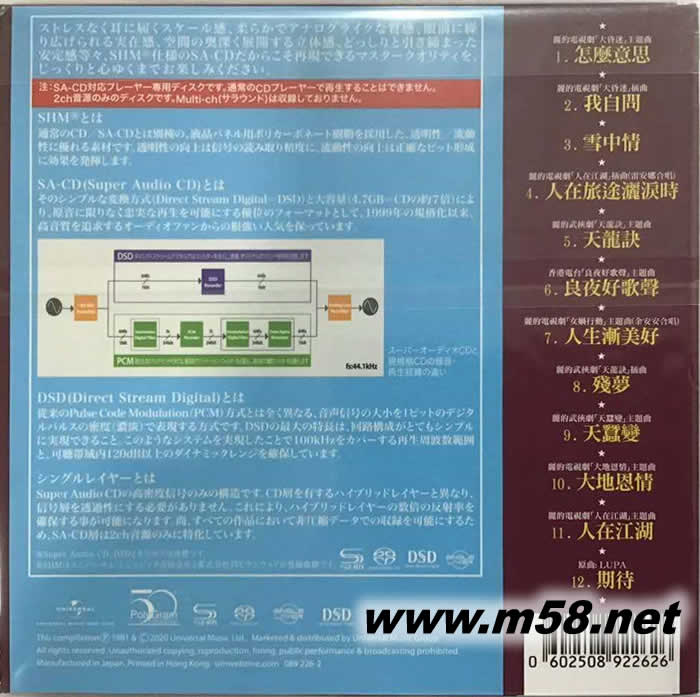 關正杰名曲選 SHMSACD(SHMSACD僅限SACD機播放)限量版專輯背面圖片