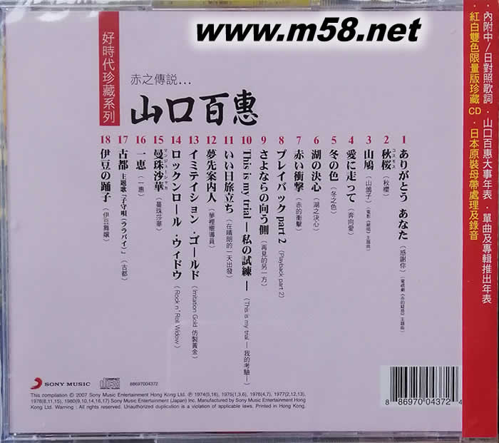 發行公司:  SONY BMG(HK) 產地:香港