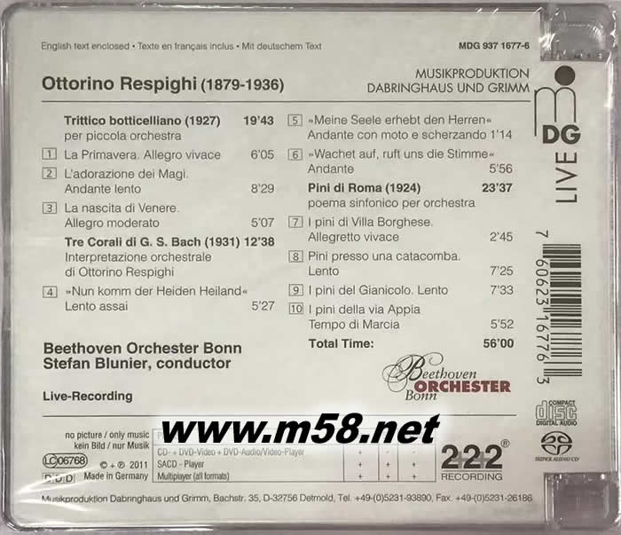 RESPIGHI BEETHOVEN ORCHESTER BONN SACD專輯背面圖片