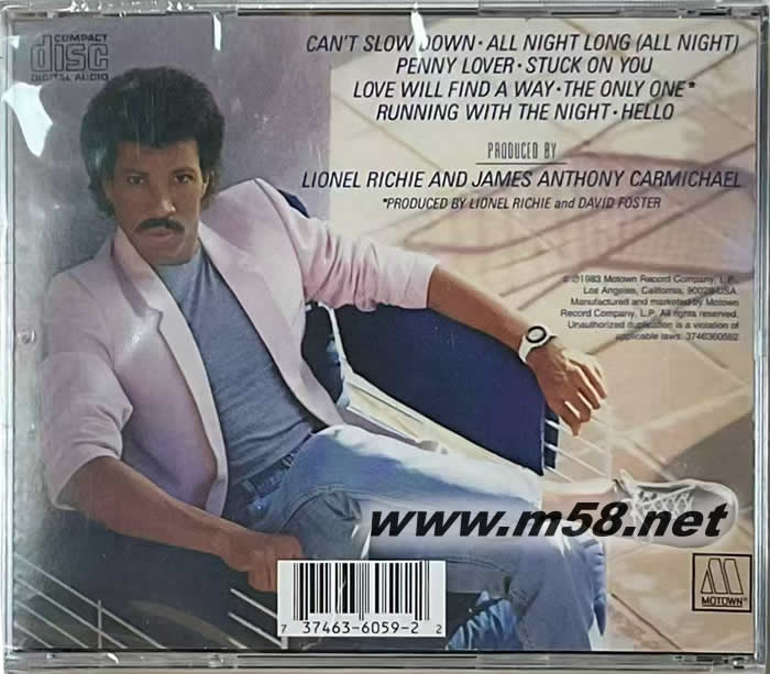 CAN'T SLOW DONW(m58.net) ★全球樂迷心悅情服的抒情圣手,滾石雜誌曾讚譽(yù)為「流行排行榜之王」的柔情歌神Lionel Richie,以優(yōu)美的金嗓與感性情歌陪著樂迷走過無數(shù)的歲月,無論是情竇初開或是熱戀、分手傷痛,他溫暖且富情感的聲韻,無疑是惟一足以令人無條件感情投誠的抒情暖心圣手-柔情歌神… 滾石雜誌曾讚譽(yù)為「流行排行榜之王」的柔情歌神-萊諾李奇Lionel Richie,以他優(yōu)美的金嗓,透過感性情歌陪著樂迷走過無數(shù)歲月,無論是情竇初開或是熱戀、分手傷痛,Lionel溫暖且極富情感之聲韻,成為最佳詮釋者。他善用其溫暖且極富情感的靈魂聲韻,深刻描繪情愛世界里悲喜交錯的故事。曾榮膺葛萊美獎「最佳流行男歌手」、「最佳製作人」加冕,實證這位全方位歌手的堅強(qiáng)實力??缡勒媲榻?jīng)典雙碟典藏盤為環(huán)球德國獨(dú)自企劃/地區(qū)限定,雙碟珍藏這位歌神的抒情經(jīng)典唱作... 1960年代,萊諾李奇與William King、Thomas McClary、Ronald LaPread、Walter "Clyde" Orange以及Milan Williams組成The Commodores海軍準(zhǔn)將合唱團(tuán),之后在1971年投效Motown唱片,最初與Michael Jackson家族團(tuán)體Jackson 5巡迴演唱2年半,1974年首張專輯『Machine Gun』終告發(fā)行,展開The Commodores最為璀璨至今令人回味再三的70年代演唱?dú)q月,贏得葛萊美「最佳節(jié)奏藍(lán)調(diào)演唱組合」獎項、2003年進(jìn)入「演唱團(tuán)體名人殿堂」。1981年萊諾李奇與戴安娜蘿絲Diana Ross合作灌錄世紀(jì)經(jīng)典情歌"無盡的愛Endless Love"蟬聯(lián)單曲排行九週冠軍,翌年萊諾李奇便離開讓他站穩(wěn)腳步的The Commodores,以個人演唱之姿展開單飛事業(yè)。1982至1987年,陸續(xù)呈現(xiàn)『Lionel Richie』、『Can’t Slow Down』以及『Dancing On The Ceiling』等三張專輯,拿下13首Top10單曲,成為80年代唯一可與Michael Jackson相媲美的創(chuàng)作男歌手,並且和Irving Berlin同列史上連續(xù)九年都有歌曲登上排行冠軍的詞曲創(chuàng)作者,單飛歲月締造兩千一百余萬張驚人銷售量,至今仍持續(xù)有作品推出。成為西洋流行樂史上無可取代的柔情歌神第一人...【柔情歌神-跨世真情經(jīng)典雙碟典藏盤】,完整收錄讓您感動到近乎驚嚇的誠意滿滿超強(qiáng)曲目,包括Hello、Say You, Say Me、Truly、Endless Love、Three Times A Lady、Stuck On You、Lady (You Bring Me Up)、Penny Lover、All Night Long (All Night)、Dancing On The Ceiling、Running With The Night等32首柔情魅力曠世經(jīng)典,典藏最令人心悅情服的萊諾李奇...
