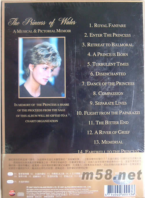 永遠的黛妃THE PRINCESS OF WALES(10周年紀念音樂大碟)專輯背面圖片
