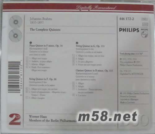 勃拉姆斯:鋼琴四重奏;敘事曲(雙碟 PHILIPS系列老版)(m58.net) 勃拉姆斯《五重奏全集》,包括黑管五重奏,鋼琴五重奏/哈斯與柏林愛樂室內樂團演奏 WERNER HEARS