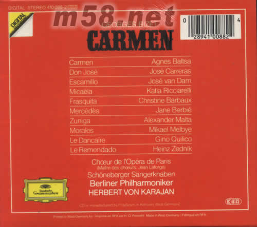 Garmen Agnes Baltsa Don Jose Jose Carreras Escamillo Jose Van Dam Micael Katia Ricciarelli Frasquita Christine Barbaux Mercedes Jane Berbie Zuniga Alexander Malta Morales Mikael melbye Le Dancalre Gino Quilico Le Remendado Heinz zednik