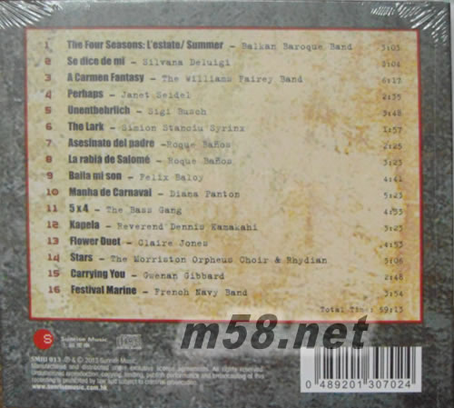 價格為估,以實到貨為準! 旗艦一號 NO.1 MUSIC FLAGSHIP(m58.net) 繼大熱發燒精選輯系列《Extreme Sound》后,全新發燒精選系列 樂團清晰音場定位、低頻“牛筋”、電影原聲現場感、完美女聲演繹共冶一爐,絕對音響器材試金石 集世界各地最靚聲錄音,包括: 韓國智能手機最新廣告歌《Vivaldi: 四季 - 夏天》、銅管樂版卡門幻想曲、英國航空經典廣告歌《Flower Duet》、音樂劇《孤星淚》歌曲《Stars》等 收錄暢銷爵士天后Janet Seidel 及Diana Panton、西班牙女歌手Silvana Deluigi經典名曲