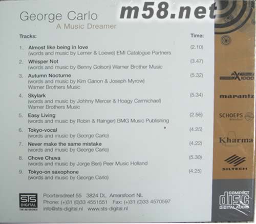 1.almost like being love (words and music by lirmer&loewe)emi catalogue patners 2.whisper not ((words and music by benny golson)warner brother music 3.autumn boctrtne (words and music by kim ganon&joseph myrow)warner brothers music 4.skylark (words and music by johhny mercer&hoagy carmichael)warner brothers music 5.easy living (words and music by robin&raingerbmg music publishing) 6.tokyo-vocal (words and music by george carlo) 7.never make the same mistake (words and music by george carlo) 8.chove chuva (words and music by jorge ben)peer music halland 9.tokyo-on saxophone (words and music by george carlo)