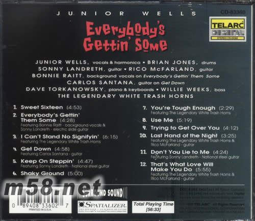 Everybody's Gettin' Some(m58.net) Junior Wells - vocals, harmonica Brian Jones -- drums Sonny Landreth -- guitar Rico McFarland -- guitar Bonnie Raitt -- background vocals Carlos Santana -- guitar Dave Torkanowsky -- piano, keyboards Willie Weeks -- bass The Legendary White Trash Horns
