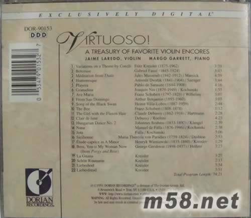 Jaime Laredo & Margo Garrett 安可!安可! 22首最受歡迎的小提琴安可曲專輯背面圖片