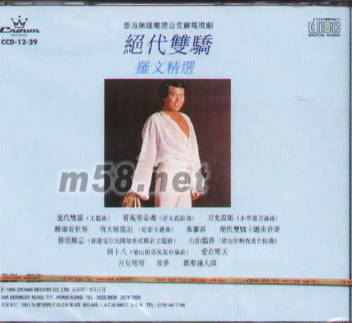 01. 絕代雙驕 (主題曲) 02. 舊苑望帝魂 (帝女花插曲) 03. 刀光淚影 (小李飛刀插曲) 04. 醉眼看世界 05. 倚天屠龍記 (電影主題曲) 06. 孤雛淚 07. 絕代雙驕主題曲音樂 08. 舊侶難忘 (香港電臺民間故事沈勝衣主題曲) 09. 山伯臨終 (梁山伯與祝英臺插曲) 10. 回十八 (梁山伯與祝英臺插曲) 11. 愛在明天 12. 月兒彎彎 13. 故夢 14. 歡樂滿人間