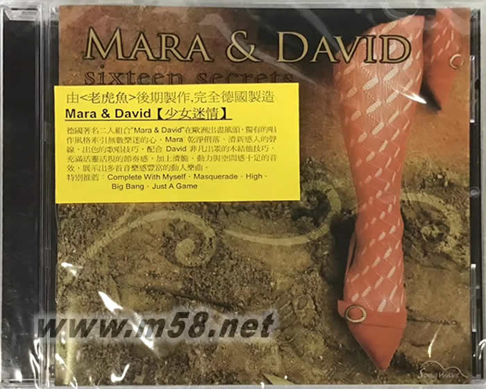 SIXTEEN SECRETS 少女迷情 (老虎魚)(m58.net) 由<老虎魚>后期制作.完全德國制造 Mara & David 少女情迷 德國著名二人組合"mara & david" 在歐洲出盡風(fēng)頭.獨(dú)有的唱作風(fēng)格牽引無數(shù)樂迷的心.mara 干凈利落,清新感人的聲線.出色的歌唱技巧,配合david非凡出眾的木吉它技巧.充滿活靈活現(xiàn)的節(jié)奏感.加上清脆.動(dòng)力與空間感十足的音效.展示出多首音樂感豐富的動(dòng)人樂曲. 特別薦:complete with myself,masquerade.high, big bang.just