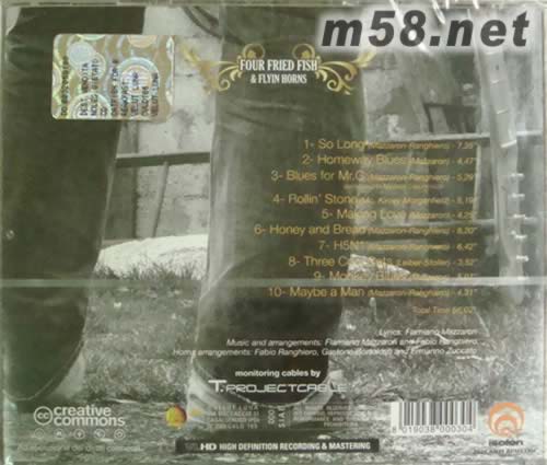 Catfish For Breakfast 鯰魚早餐(m58.net) 特殊的和聲是藍調之一個特點,演唱方式顯示出它的西非來源,對美國和西方流行音樂有非常大的影響。自Stevie Ray Vaughan 死后,Gary Moore之作品走下坡,好久沒有聽到現代歌手或組合在藍調專輯中有驚喜。Four Fried Fish & Flyin Horns 這(四條炸魚)全新專輯 catfish for breakfast (鯰魚早餐) 是義大利發燒廠牌如月天碟特別為藍調樂迷推出。以歌唱、吉他、琴、鼓聲 + 小號、口琴等等創作出帶點爵士及一點點Funky獨特之味道。還有以24bit / 88.2 kHz 錄音,T.Projectcable monitoring cables、Isofon 噪音分離結構組成之錄音室中收錄,發燒音效,無出其右。