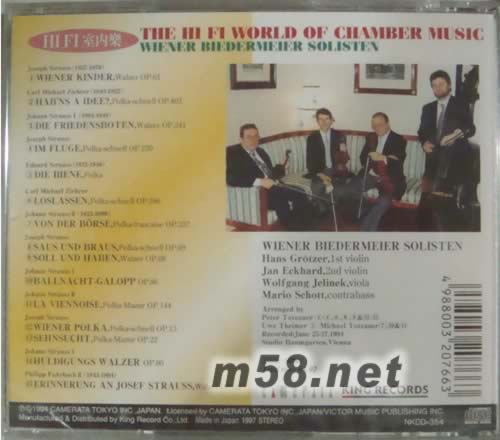 1.WIENER KINDER,walzer 2.HAB'NS A IDEE?,polka-schnell op 3.DIE FRIEDENSBOTE,walzer op.241 4.IM FLUGE,polka-schell op 5.DIE BIENE,polka 6.LOSLASSEN,polka-schnell op.386 7.VON DER BORSE,polka-francaise op.337 8.SAUS UND BRAUS,polka-schnell op.69 9.SOLL UND HABEN,walzer op.68 10.BALLNACHT-GALOPP.op.86 11.LA VIENNOISE.polka-mazur op.144 12.WIENER POLKA,polka-schell op.13 13.SEHNSUCHT,polka-mazur op.22 14.HULDIGUNGS WALZER,op.80 15.ERINNERUNG AN JOSEF STRAUSS,walzer op.53