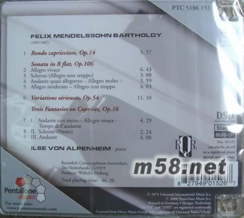 Felix Mendelssohn Bartholdy 鋼琴SACD(m58.net) 鋼琴:Ilse Von Alpenheim