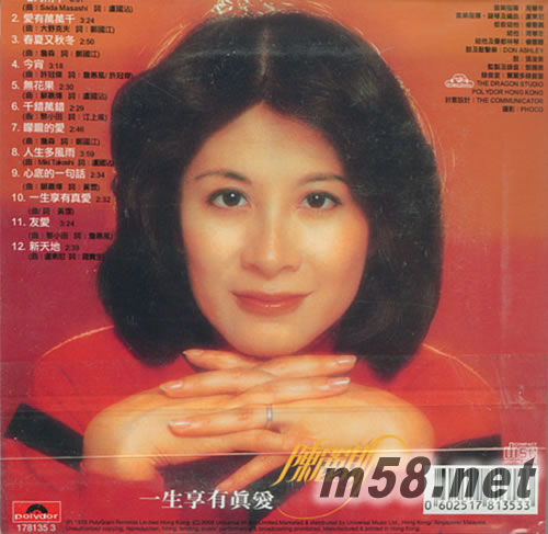 01. 七月雨中 02. 愛有萬萬千 03. 春夏又秋冬 04. 今宵 05. 無花果 06. 千錯萬錯 07. 朦朧的愛 08. 人生多風雨 09. 心底的一句話 10. 一生享有真愛 11. 友愛 12. 新天地