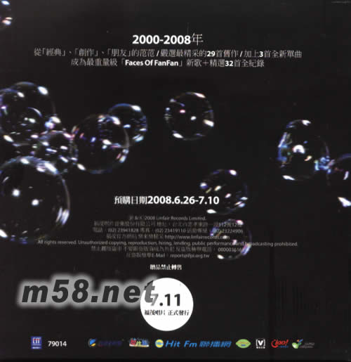 Faces Of FanFan(臺(tái)灣預(yù)購版)(m58.net) 獨(dú)家預(yù)購禮: FACES OF FANFAN 2000-2007年演唱會(huì)全紀(jì)錄30分鐘精華DVD 送完即止 7月1日前匯款的才有贈(zèng)品。