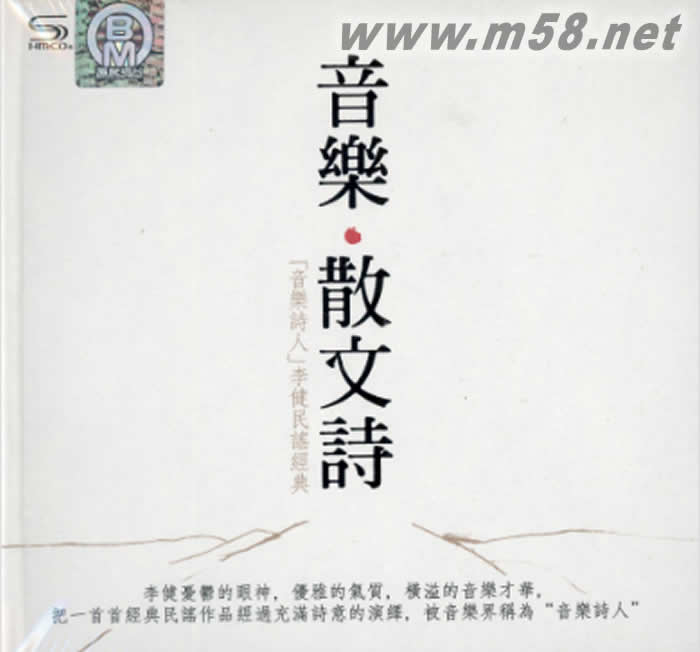 價格為估,以實到貨為準! 音樂 散文詩 音樂詩人 李健民謠經典 (2SHMCD)(m58.net) 音樂詩人 李健民謠經典 李健優雅的眼神,優雅的氣質,橫溢的音樂才華,把一首首經典民謠作品經過充滿詩意的演繹,被 音樂界稱為“ 音樂詩人”。