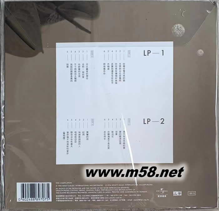 鉆石金選集1990-1994 2LP黑膠(m58.net) 孟庭葦首張個(gè)人黑膠唱片,收錄24首金牌歌曲.選用180克高品質(zhì)材料 百分百日本生產(chǎn)180g黑膠大碟,日本壓制. 孟庭葦 鉆石金選集1990-1994 2LP黑膠 日本壓制限量編號(hào)版 上華 孟庭葦 鉆石金選集1990-1994 2LP黑膠唱片 限量編號(hào)版 180G 日本壓制