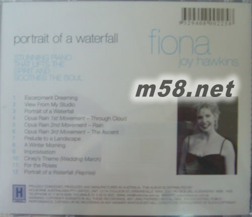 價格為估,以實到貨為準! Portrait Of A Waterfall 畫中瀑布(m58.net) 女鋼琴家fiona joy hawkins一鳴驚人之作,唯美的鋼琴旋律如流水般透明清澈,如愛情般迷人,將女性的溫柔在琴uin中表露無遺,純潔寧靜,本碟榮獲新世紀最佳鋼琴大獎.發燒級巨獻,琴音清脆動人