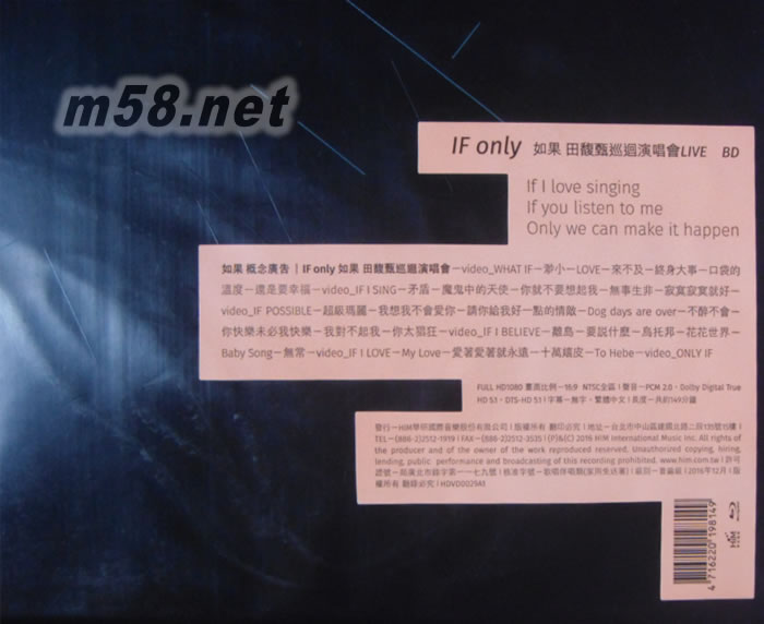 IF ONLY 如果 田馥甄巡迴演唱會BD 限量版預購單背面圖片