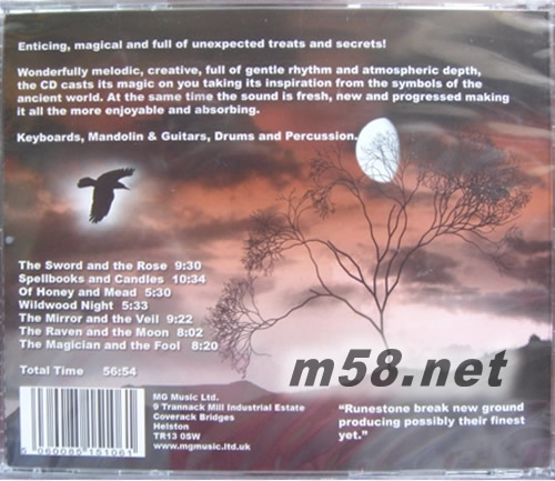 The Raven and the Moon烏鴉與月亮(m58.net) 英國新世紀冥想音樂組合 Runestone 在2008年的這張最新專輯《The Raven And The Moon 烏鴉與月亮》里面以更富現代感的節奏、更唯美的旋律向人們講述富有靈性和神性的圣鳥——烏鴉的傳奇故事。此專輯普遍被專業評論家及樂迷認為是 Runestone 超越以往的最佳唱片,旋律更富現代感,美妙大氣,更具神秘意味。 烏鴉在西方傳說中是智慧、忠貞、慈孝、循禮、拾遺的鳥兒,英國皇家至今仍有飼養六只烏鴉守衛倫敦塔的傳統。月輝下靜默的世界萬物在夢中安寧棲息,一個神秘的黑色生靈在飛舞,悄然展現著它的神奇與智慧。優美的旋律如月的溫柔與圣潔,森林的神圣大氣為這夜之精靈增添了神奇的力量——烏鴉,是這和美之夜的守護神。強烈推薦該專輯,絕對純正的冥想大餐,每曲都各有濃厚意味,令人深思、難忘……