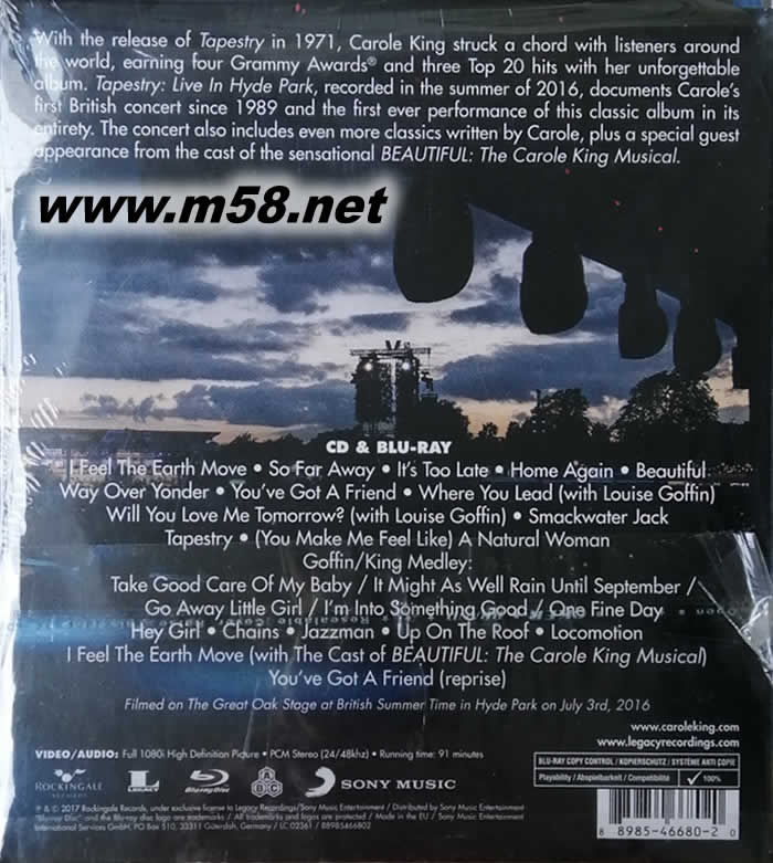 織錦畫: 海德公園現場實況 Tapestry Live in Hyde Park Blu-ray CD+ 藍光BD專輯背面圖片
