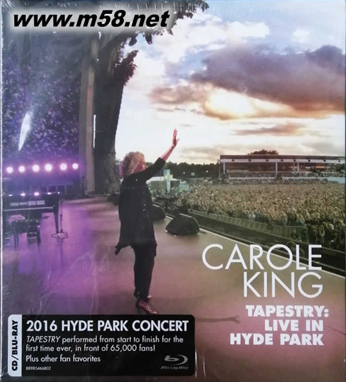 織錦畫: 海德公園現場實況 Tapestry Live in Hyde Park Blu-ray CD+ 藍光BD(m58.net) 葛萊美獎第一位女性囊獲「年度最佳專輯(Tapestry)」、「年度最佳唱片(It’s Too Late)」、「年度最佳歌曲(You’ve Got A Friend)」、「年度最佳流行樂女歌手」等四項大獎創作才女,2016年夏天於倫敦海德公園之現場演出實況,完美呈現進口CD+ Blu Ray版 ★Carole King自1989年以來首次在英國開唱,同時也是破天荒首次演唱1971年樂壇經典專輯「Tapestry」之全專輯歌曲,同時加上多首Carole King最膾炙人口之名曲,跨越40年的經典演出CD+ Blu Ray影音雙碟進口,值得細細品味珍藏 Carole King在1971年以專輯「Tapestry」開啟創作女歌手的年代,此張專輯榮獲年度專輯、年度唱片("It`s Too Late")、年度歌曲("You`ve Got A Friend")與最佳流行女歌手等4座葛萊美獎,專輯在全美專輯榜蟬連15週冠軍,累計的進榜週數超過300週,專輯在全球的累積銷量高達2500萬張,專輯在1998年入列「葛萊美名作殿堂」(Grammy Hall Of Fame)。 Carole King譜寫創作的"You`ve Got A Friend"、"Will You Love Me Tomorrow"、"(You Made Me Feel Like A) Natural Woman"、"The Loco-Motion"、"Crying In The Rain"、"Up On The Roof"、"One Fine Day"…等400多首歌曲,累積有上千種歌手與樂團灌唱的版本,這些歌曲的錄音版本前后118度挺進全美熱門單曲榜,憑藉著這些歌曲在排行榜上的優異表現,Carole King贏得了美國流行音樂史上最成功且最具影響力的創作女歌手的美譽,1987年入列「歌曲創作名人殿堂」(Songwriters Hall Of Fame),她在1988年與歌曲創作搭擋Gerry Goffin獲得美國歌曲創作者學院(National Academy Of Songwriters)頒發終身成就獎,兩人在1990年入列搖滾名人殿堂。 2012年4月,Carole King出版的回憶錄「A Natural Woman」進駐紐約時報暢銷書排行榜前十名,她在2013年獲得美國錄音學院頒發終身成就獎,同一年她從美國總統歐巴馬手中接下美國國會圖書館為流行歌曲所設立的蓋希文獎(The Library of Congress Gershwin Prize for Popular Song)。由她的生平故事與歌曲串連而成的音樂劇「Beautiful : The Carole King Musical」在2014年公演后成了紐約百老匯與倫敦西區劇場的熱門戲碼,音樂劇獲得兩座東尼獎的肯定,根據音樂劇拍攝的電影預計在2017年上映。Carole King在2015年獲頒表揚表演藝術成就的甘迺迪中心榮譽獎(The Kennedy Center Honors)