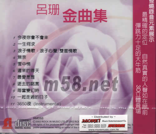 呂珊(金曲集)(m58.net) 2002首張女聲發燒天碟 絕對令你感動! 本地最具實力女歌手重新演繹 本地流行音樂史上最優秀十一首金曲 本港實力派女歌手呂珊,于九九年推出了首張發燒錄音[呂珊老歌集],她那把甜如蜜餞、美若天仙的金嗓子,加上技巧高超的歌唱造詣,成為本地樂壇難得一遇的美聲?!督鹎肥撬噤浀牡谌龔埌l燒錄音,以全新編曲重唱[一生何求]、[浪子心聲]、[無奈]、[雪中情]及[最愛是誰]等十一首經典老歌,及24bit/192kHz DSP數碼技術錄制。[今夜你會不會來]一曲盡現呂珊的歌唱造詣,每字每句皆流露出真摯的感情,音樂感染力感染力滿溢。錄音質素明顯比老歌一、二集更上一層樓,全頻透明度一流,強烈的樂器質感與及出色密度感,優美細膩,音色自然和諧,伴奏的樂器充滿強烈的質感,音像聚焦力突出,是測試音響器材的分析力和透明度的上佳軟件。